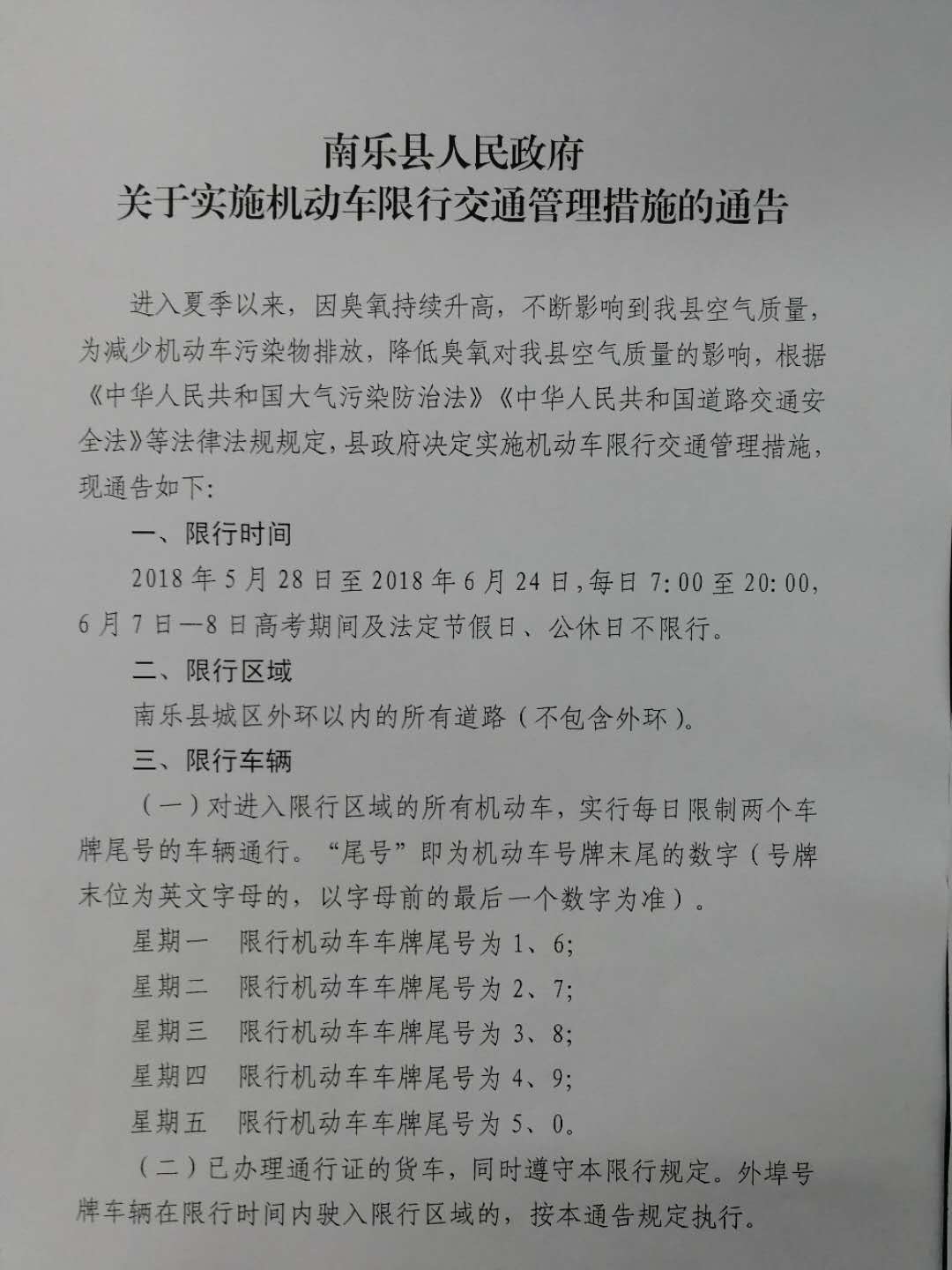 南樂縣人民政府關(guān)于實施機動車限行交通管理措施的通告